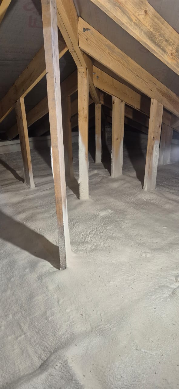 Основной задачей на этом объекте стало предотвращение утечек тепла и защита от образования конденсата. Здесь мы использовали жесткий пенополиуретан с закрытой ячейкой. Этот материал обеспечивает надежную теплоизоляцию и блокирует проникновение влаги. Помимо того, он поглощает шумы, что создает дополнительную звукоизоляцию. Для проведения работ мы применяли оборудование высокого давления с распылителями для равномерного распределения ППУ. Вспененную массу мы наносили по железобетонным плитам со стороны кровли. Вначале зачистили поверхность от пыли и грязи, обработали все неровности. Затем нанесли первый тонкий слой пенополиуретана и дали ему полностью застыть. Это необходимо, чтобы создать устойчивое сцепление с поверхностью. Далее мы напылили еще несколько слоев и также дали им затвердеть. Особое внимание уделили участкам по краям, в углах и местах стыков плит. Общая толщина утеплителя составила 5 см, что достаточного для требуемого уровня теплоизоляции.